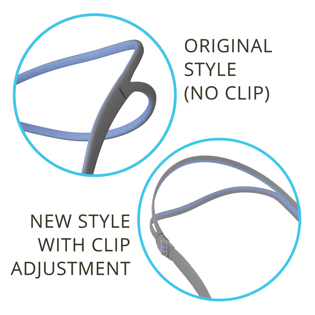 Color Information: QuickFit Headgear is available in two color variants: gray with pink highlights and gray with blue highlights. Both color options are the same size and can be used on any AirFit P10 or AirFit P10 For Her mask.